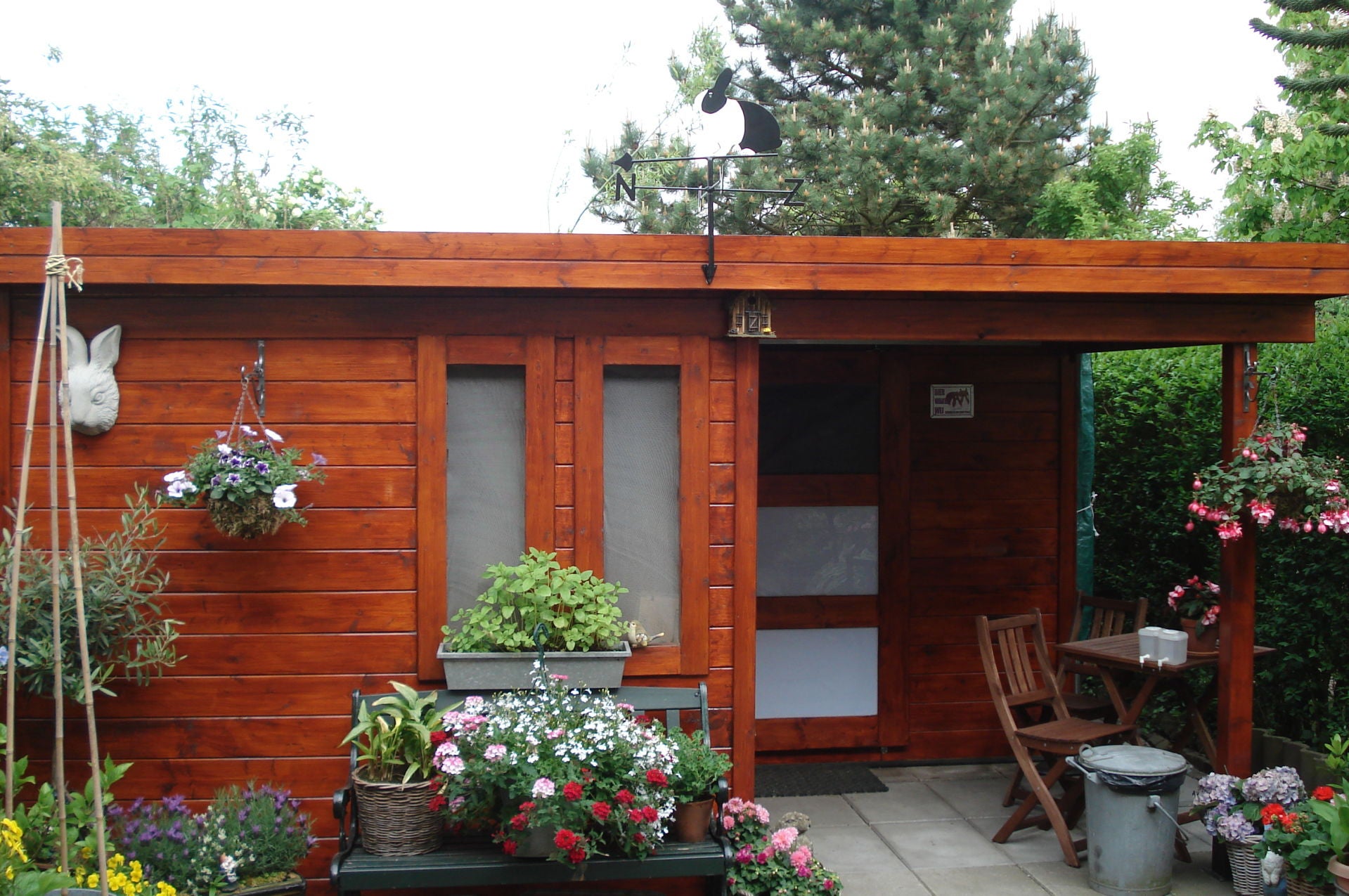 Mijn Hollanders en Kleurdwergen heb ik achter in de tuin in een blokhut gehuisvest.